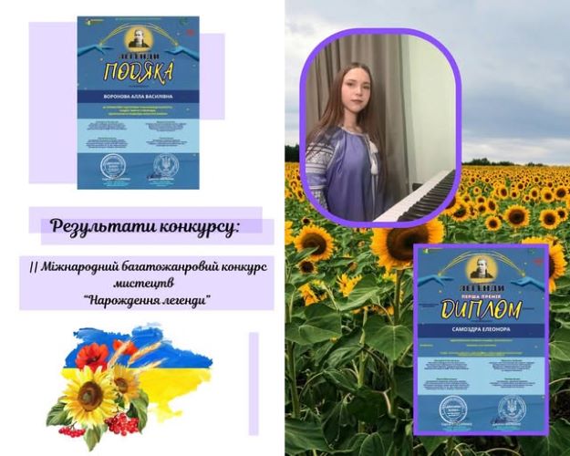 Учениця КЗСМО «Музична школа м. Новогродівка» Елеонора Самоздра здобула I премію на II Міжнародному багатожанровому конкурсі мистецтв «Народження легенди».